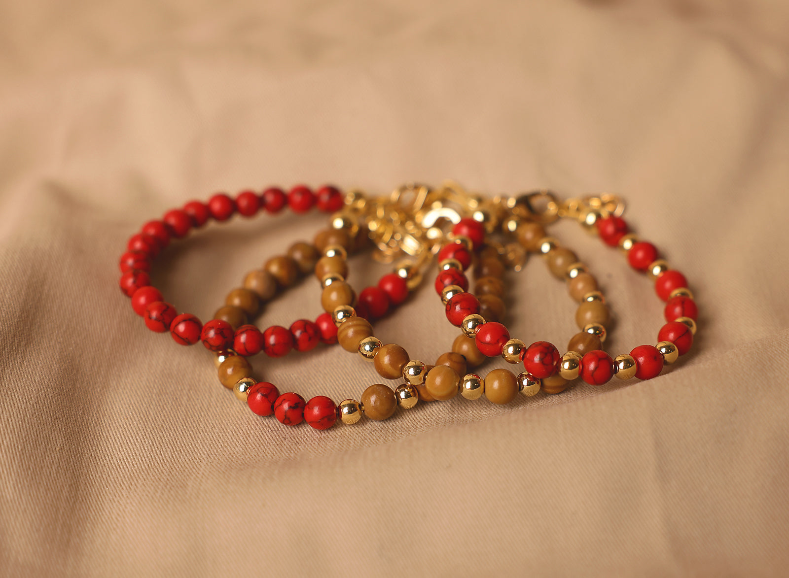 RED DYE WITH GOLD BEADS BRACELET