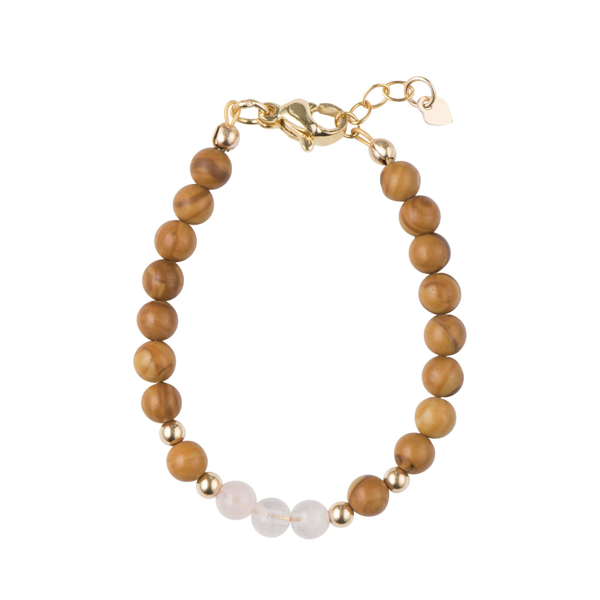 WOOD GRAIN STONE WITH ROSE BEADS BRACELET