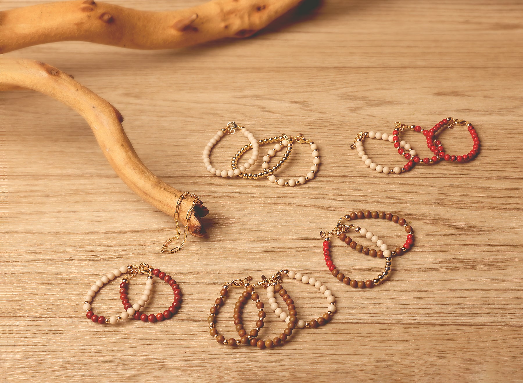 RED DYE WITH MULTI BROWN BEADS BRACELET